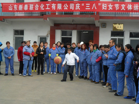 在“三八”國(guó)際婦女節(jié)到來(lái)之際,為豐富節(jié)日期間廣大女職工的業(yè)余文化生活,活躍節(jié)日氣氛,展現(xiàn)女職工愛(ài)崗敬業(yè)、健康向上的精神面貌,公司于3月8日上午在辦公樓前舉辦了文體娛樂(lè)活動(dòng),子公司新泰公司也同時(shí)舉辦了相關(guān)慶祝活動(dòng),總公司活動(dòng)現(xiàn)場(chǎng)設(shè)置了趣味保齡球、定點(diǎn)套圈、沙包投準(zhǔn)、摸石過(guò)河等四個(gè)項(xiàng)目,共9個(gè)代表隊(duì)68名選手參加了比賽。新泰公司共5個(gè)代表隊(duì)45名參賽選手參加了“ 雙腳跳遠(yuǎn)” “腳扔沙包”及“趣味保齡球”三個(gè)項(xiàng)目的比賽,比賽結(jié)束后,對(duì)獲獎(jiǎng)人員進(jìn)行了現(xiàn)場(chǎng)頒獎(jiǎng)。(圖為比賽現(xiàn)場(chǎng))