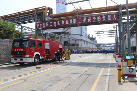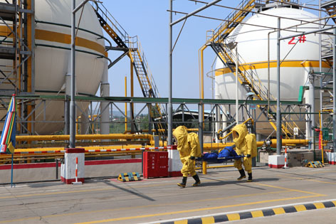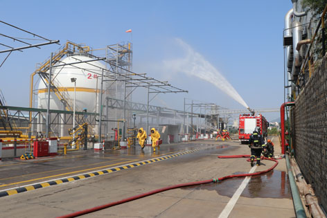 2018623日上午,公司在原料車間液氨罐區(qū)組織開展了生產(chǎn)安全事故綜合應急演練活動??h委常委、副縣長鄭良憲、縣安監(jiān)局局長王文軍、縣總工會主席黃軍紅、縣環(huán)保局領導和縣其它化工企業(yè)職工以及公司部分員工參加和觀摩了演練。