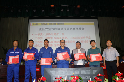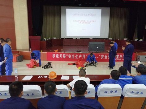 6月21日下午,公司組織各車間、制造部在聯(lián)合會(huì)堂開展了應(yīng)急救援器材比武活動(dòng)。活動(dòng)分正壓式空氣呼吸器、輕型防化服穿戴和心肺復(fù)蘇模擬救援兩個(gè)項(xiàng)目,正壓式空氣呼吸器、輕型防化服穿戴比武共19人參賽,心肺復(fù)蘇模擬救援比武共14人參賽。 正壓式空氣呼吸器、輕型防化服穿戴比賽,原料車間張士營以66秒100分的成績獲得第一名,硝酸制造部孔德庚、三胺制造部唐孝宗獲得二等獎(jiǎng),硝基復(fù)合肥制造部竇榮剛、硝酸制造部咸化玉、硝酸制造部談啟明獲得三等獎(jiǎng)。 心肺復(fù)蘇模擬救援比賽,硝基復(fù)合肥制造部王洪標(biāo)以98%的成功率獲得第一名,供電車間任相偉、硝酸制造部談啟明獲得二等獎(jiǎng),三胺制造部仇玉彬、機(jī)修車間戴鑫鑫、機(jī)修車間唐坤敬獲得三等獎(jiǎng)。