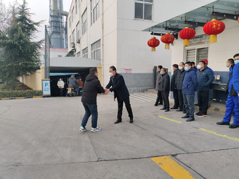 1月22日(農(nóng)歷正月初一)早上,公司領(lǐng)導(dǎo)李德軍、李峰、齊俊祥、呂懷磊、許立剛、尹連偉、白如彬早早地在公司生產(chǎn)廠區(qū)大門口等候前來上班的員工,向年初一堅(jiān)守崗位、敬業(yè)奉獻(xiàn)的公司員工送去了節(jié)日的問候和新年的祝福,對(duì)他們的辛勤工作表示了感謝。