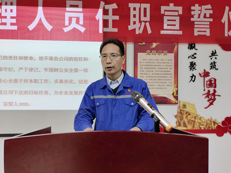 公司黨委書(shū)記、董事長(zhǎng)李德軍主持宣誓儀式,總經(jīng)理李峰帶領(lǐng)所有管理人員進(jìn)行了宣誓。