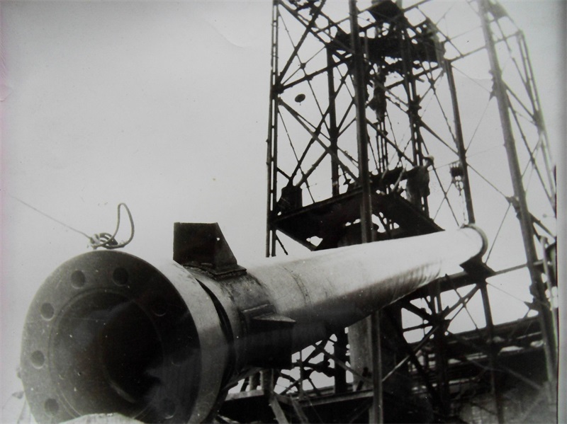 70年代發(fā)揚艱苦奮斗自力更生精神投資改造硝銨生產(chǎn)系統(tǒng) 圖為機修車間制作酸吸收塔場景